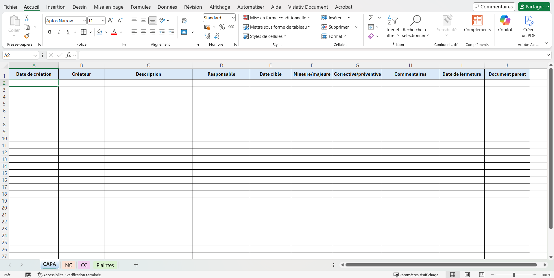 Fichier Excel classique de gestion des CAPA