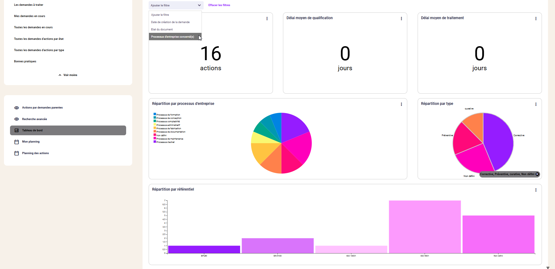 Peu importe l’industrie dans laquelle vous travaillez, vous gérez des actions avec des responsables et des dates cibles. Vous devez effectuer des suivis et potentiellement extraire des statistiques. En qualité, vos actions découlent par exemple de vos non-conformités, des vos audits internes et externes, de vos réclamations par les clients, des contrôles de changements. D’autres départements peuvent se greffer à votre outil : la maintenance pour les actions sur les équipements incluant les étalonnages et calibrations, les ressources humaines pour leurs actions d’intégration des employés et tous les autres pour des demandes d’amélioration.