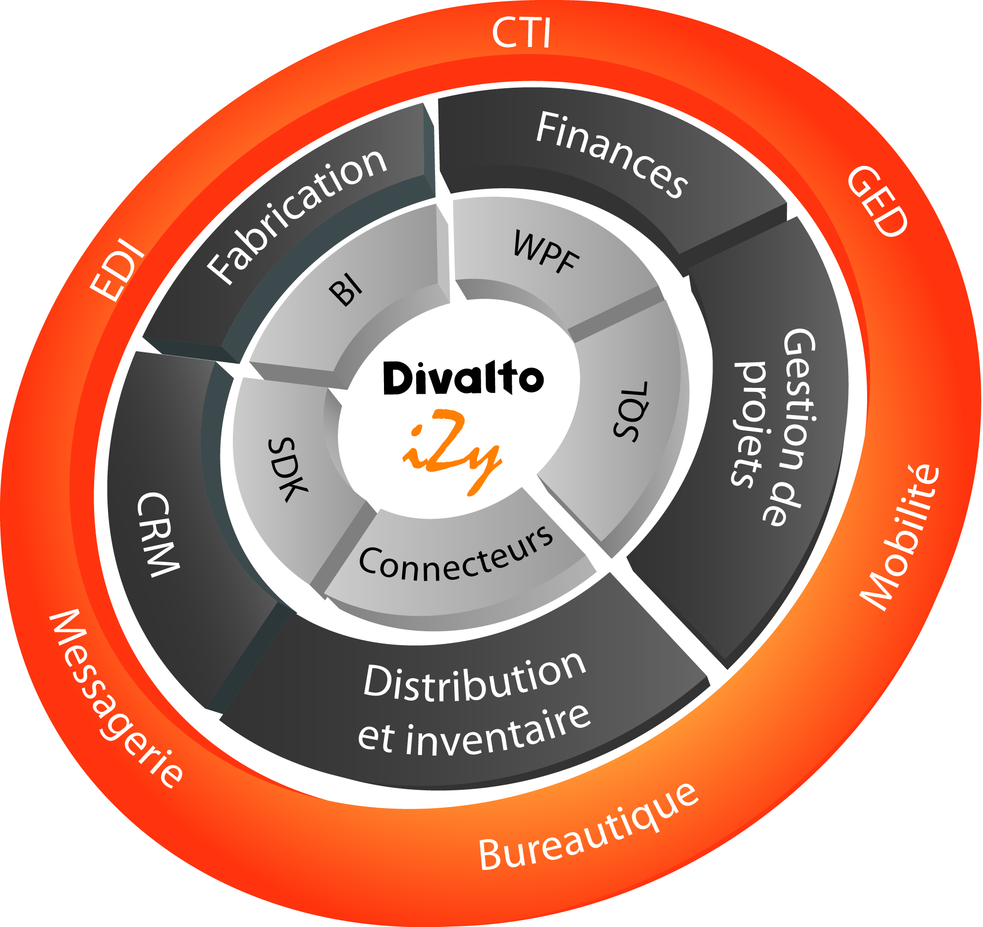 Divalto Izy est fourni en version modulaire (Finance, CRM, Distribution) ou en package (Izy Distribution, Izy Production ou Izy Projet).