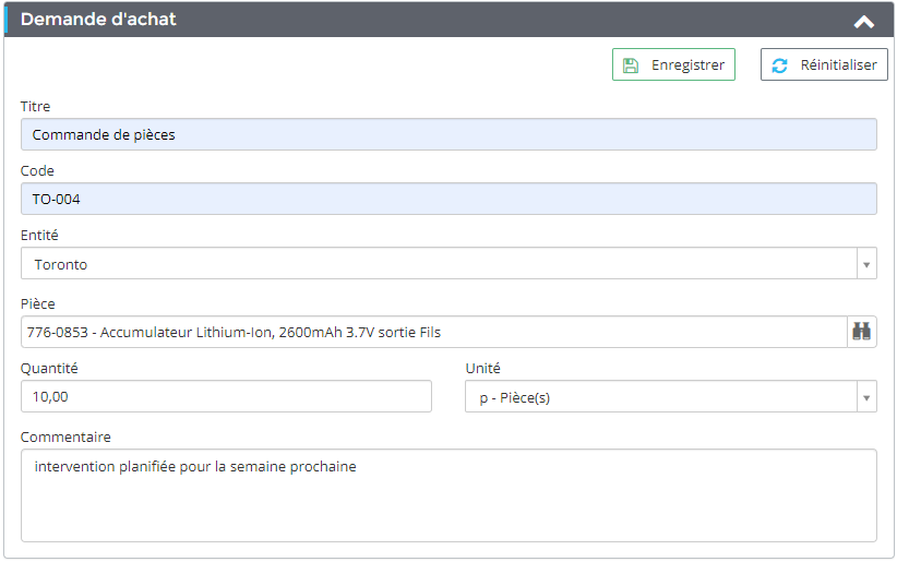 Gestion des pièces et des achats